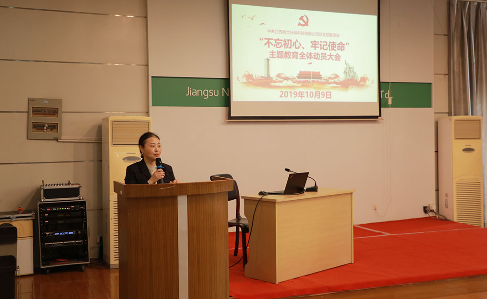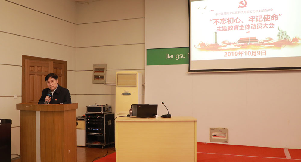 2019年10月9日, 公司召開“不忘初心、牢記使命”主題教育動員大會,進一步激發全體黨員干部的工作熱情和奮斗精神。公司總經理呂振華出席會議并作指導講話,黨總支書記陳標作動員講話,黨總支組織委員駱玉琴主持會議,黨總支宣傳委員臧傳利作主題教育專題黨課。公司領導班子成員,黨總支委員、全體中層干部,全體黨員及入黨積極分子參加會議。