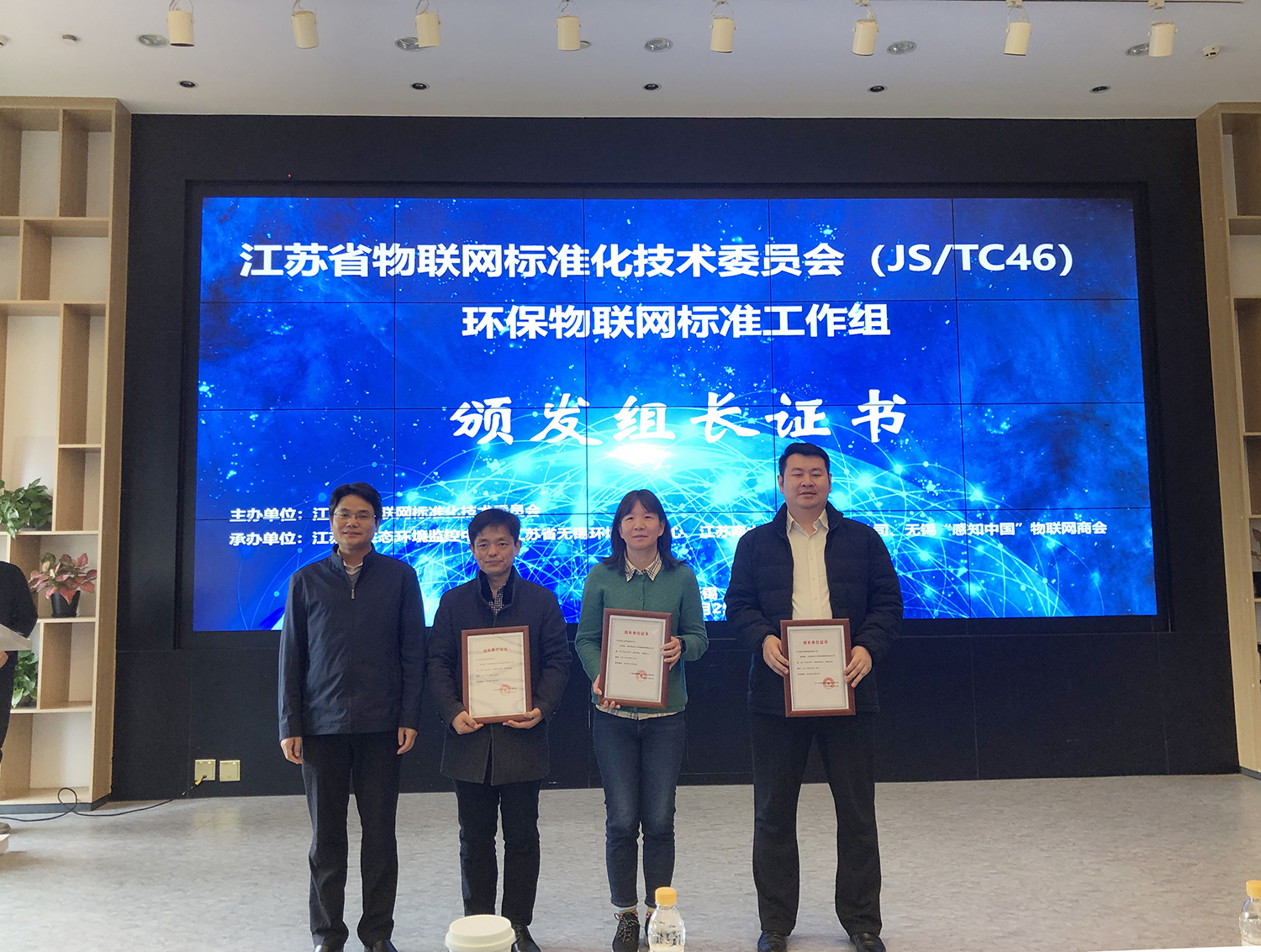 會議由江蘇省物聯(lián)網(wǎng)標(biāo)準(zhǔn)化技術(shù)委員會秘書長陳書義宣讀成立決議并授予證書。